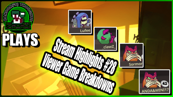 https://youtu.be/NBcZvhXL1eg Welcome back everyone! A peek behind the curtain so to speak. The toughest night I've had in Phobies yet, but we persevere. Let's jump in! Thanks for coming by, and Black Lives Matter. 00:00:00 Start00:03:46 Leveling Phobies00:11:09 Arena Game 100:45:37 Arena Game 201:01:51 Arena Game 301:25:22 Arena Game 401:44:10 Closing Check out Random('s) Thoughts... Continue Reading →